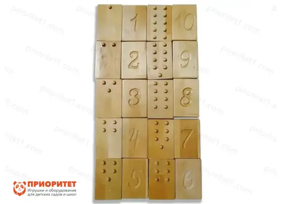 Тактильные дощечки разработаны для стимуляции развития тактильного интереса у детей. С одной стороны фишки размещена цифра, а с другой нанесены выпуклые точки, соответствующие ей. К примеру, на цифре 5 имеется пять точек.