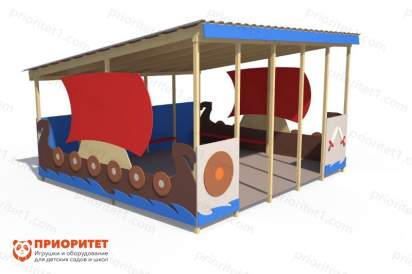 Играя на улице, дети могут почувствовать себя настоящими мореплавателями благодаря интересному красочному навесу, выполненного в виде морского судна. На его борту может уместиться большое количество детей, а на лавочках они могут отдохнуть после активных игр. Оборудование рекомендовано для обустройства детских площадок в дошкольных учреждениях или на территории дома.