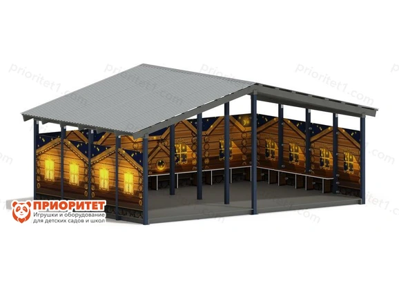 Предложите детям собираться под теневым навесом. Он очень похож на детскую веранду, и такая вещь обязательно устанавливается на индивидуальном участке группы. Попросите назвать то, что изображено на стенах теневого навеса, обязательно повторяйте цвета, пусть ребенок тренирует память.