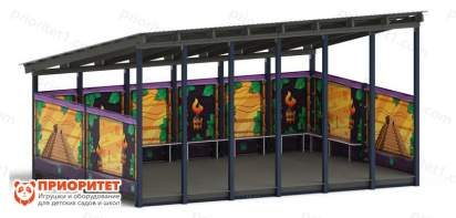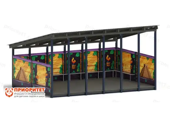 Тент с крышей, предназначенный специально для эксплуатации под открытым небом. Обеспечивает дополнительный источник тени на улице. Используется на общественных территориях, в образовательных школьных и дошкольных учреждениях. Допускается монтаж непосредственно в частных дворах и на дачах. Представлено изделие конструкцией с крышей и собственным напольным покрытием. Стены оформлены в виде волшебного городка. Способствует гармоничному развитию ребенка, не имеет ограничений по возрасту эксплуатации. Пользоваться соответствующим оборудованием сможет даже самый маленький. Основное предназначение теневого навеса – защита от осадков и внешнего воздействия. Обладает широкой областью применения. Свойства и ключевое предназначение территории с искусственной тенью меняется в зависимости от установленного «внутри» оборудования. Послужит не только игровой зоной, но и обеденным местом в случае необходимости. Не требует особого ухода, обладает соответствием качеству и ФГОС.