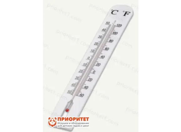 Уличный термометр помогает определить температуру воздуха. Рекомендуется использовать оборудование совместно с метеостанцией, расположенной на детской площадке. Термометр поможет научить детей определять температуру и одеваться в соответствии с погодными условиями. При обращении детей с термометром рядом обязательно должен находиться взрослый.