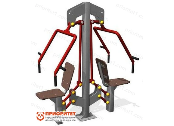 Уличный тренажер с антивандальной конструкцией можно разместить на любой детской или спортивной площадке. Он выдерживает интенсивные нагрузки и может использоваться как взрослыми, так и детьми для занятий воркаутом или систематических тренировок. Тренажер состоит из центральной стойки, двух сидений и рычагов с двумя видами хватов для выполнения упражнений. Активные занятия на таком тренажере способствуют развитию физической силы, выносливости, вырабатывают силу воли и улучшают общее самочувствие.