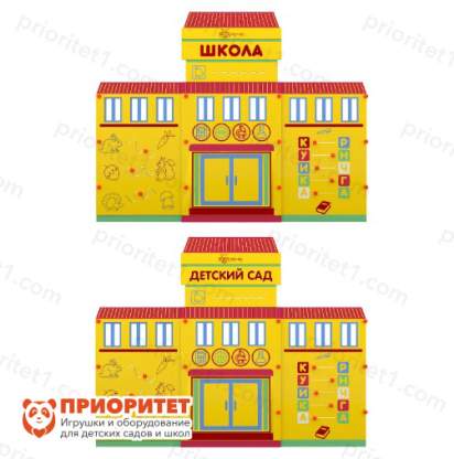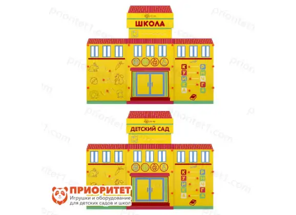 Учебно-игровой макет Детский сад/Школа — это учебно-игровое оборудование, которое имитирует реальные объекты городской инфраструктуры, такие как детский сад или школа. Макет предназначен для использования на автогородках и служит точкой отправления и назначения для детей, играющих роли пешеходов и водителей. Он может быть использован как в мобильных, так и в стационарных версиях.