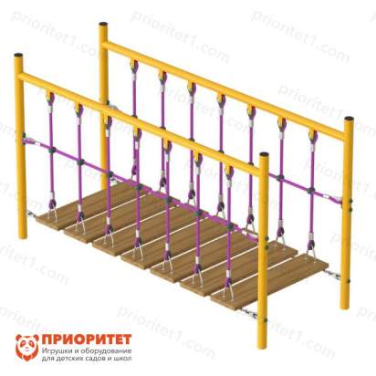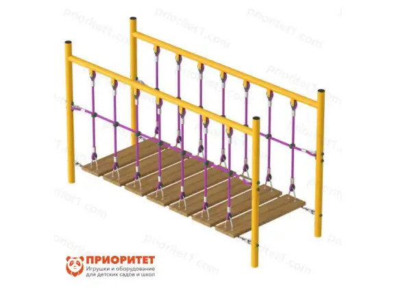 Веревочный мостик разработан для организации детских площадок. Помимо развлекательной цели, мостик выполняет развивающую функцию. Перешагивая по планкам, дети развивают координацию, физическую силу, контроль движений. Все это происходит в виде игры незаметно для самих детей.