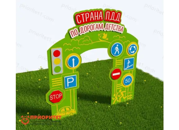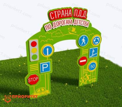 Входная композиция с тематическим дизайном, формирует у детей положительный настрой к изучению правил дорожного движения.