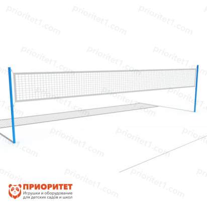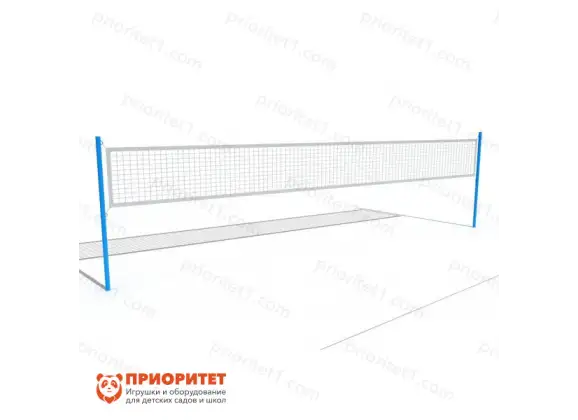 - Стойки монтируются в землю путем бетонирования. После установки, на кольцах закрепляют сетку для волейбола.