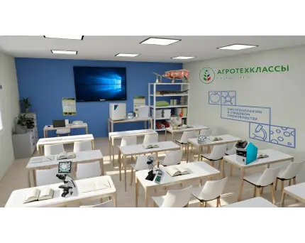 Согласно установленным приказам, кабинет агрокласса «Биотехнологии в пищевом производстве» должен быть оснащен как цифровыми комплексами, так и специализированным лабораторным инструментом. Это помогает проводить полный цикл исследований: от анализа сырья до упаковки готового продукта.
