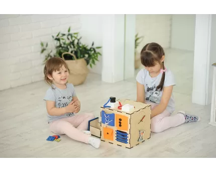 - Моторика и координация движений: Бизидоски требуют от детей использования мелкой моторики, точности движений. Они должны нажимать кнопки, поворачивать колеса, открывать или закрывать дверцы, а также выполнять другие активности, которые развивают их моторные навыки, координацию рук и глаз.