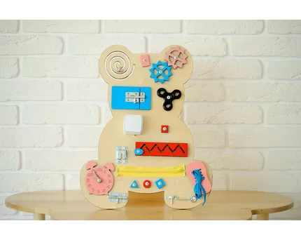 - Безопасность. Убедитесь, что панель не имеет острых углов, мелких и выпирающих деталей. Все элементы должны быть прочно закреплены на конструкции так, чтобы ребенок не смог их оторвать и травмироваться. Деревянные панели должны быть тщательно отшлифованы, не иметь зазубрин и отколов.
