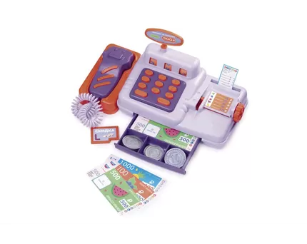 Примером последних может стать игровой набор «Касса маркет» от компании «Приоритет». Он состоит из мультифункционального кассового аппарата, терминала, бумажных банкнот, монет, скидочной карты.