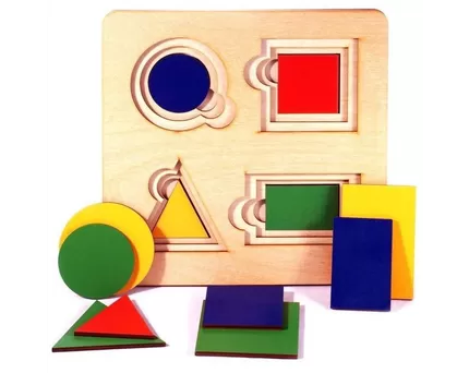Вариант рамок-вкладышей на геометрическую тематику позволяет улучшать и закреплять знания детей в простой игровой форме. Яркие цвета привлекут внимание малышей, надолго привлекая их внимание. Эту игрушку придумала Мария Монтессори, которая является одной из первых женщин врачей 19 века.