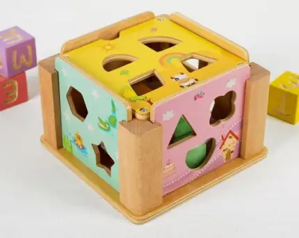 Именно такие игрушки чаще всего используются детьми младшего дошкольного возраста. Пожалуй, это самая обширная группа. Малыш подбирает фигурку (призму, кубик, пирамидку и т.д.) к подходящему отверстию и просовывает её внутрь деревянной коробки. Конфигураций у таких сортеров – бесконечное множество, как и цветовых решений, наполнения и т.д. Однако смысл игры всегда остаётся одинаковым.