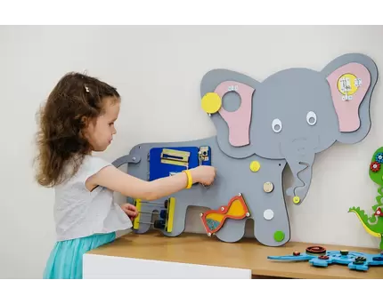 - Покажите, как играть с бизибордом: как открывать, закрывать различные замки и защелки, как работают кнопки, переключатели, как застегивать и расстегивать молнии, крючки и т.д.