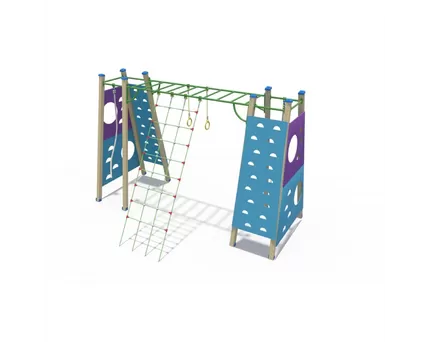 - Детский игровой комплекс «Небо». Это комбинированный комплекс для игр и занятий спортом. Включает гимнастическую стенку, лесенки и стойки для подтягиваний на руках, а также горку для спускания вниз.