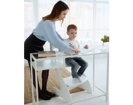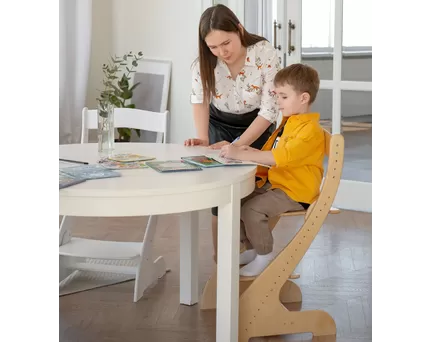 - Поддержка правильной осанки: Растущая мебель часто имеет эргономический дизайн, который способствует правильной осанке ребенка. Столы могут иметь наклонную столешницу, которая помогает снизить нагрузку на позвоночник, шейно-плечевую область. Стулья могут быть оборудованы специальной спинкой, которая поддерживает правильное положение спины.