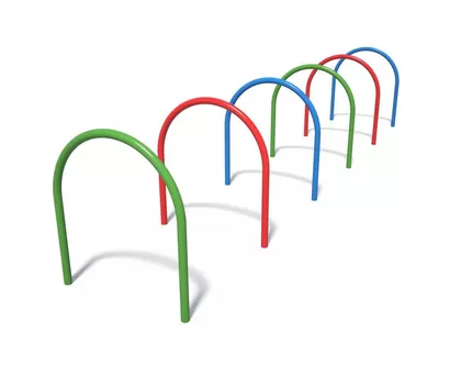 Лаз с дугами – универсальное приспособление для активных игр. В комплект входит шесть арок разных цветов. Дети могут пролазить под ними, оббегать вокруг, раскачиваться, держась руками, использовать в качестве брусьев. Это практичное и яркое решение, которое украсит придомовую территорию.