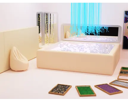 Чтобы сенсорная комната в детском саду была действительно полезной, важно использовать оборудование, которое будет стимулировать разные каналы восприятия и в то же время оставаться безопасным, долговечным. Оборудование делят по функционалу: световое, тактильное, звуковое, игровое, мебельное.