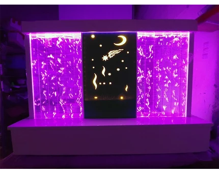 Яркие, но мягкие визуальные стимулы притягивают внимание малышей, помогают концентрироваться. Здесь устанавливают световые столы, проекторы «звёздное небо», пузырьковые колонны, фиброоптические нити. Световые эффекты создают волшебную атмосферу, позволяют проводить занятия на развитие воображения.