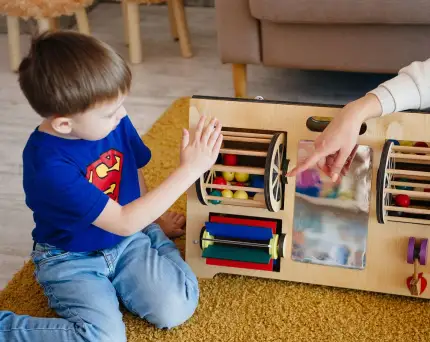 - Игры с разными текстурами, материалами: Разнообразие текстур или материалов способствует развитию тактильных навыков, чувства прикосновения у детей. Разнообразие материалов, таких как дерево, пластик, металл или ткань, позволяет исследовать и обнаруживать новые ощущения.