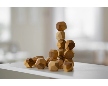 - Деревянные кубики (для младших групп) — учат балансу, симметрии и первым логическим связям.