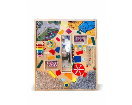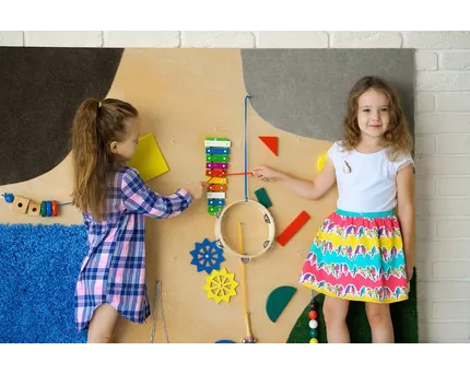 Кстати, очень интересной для детей младшего возраста будет большая акустическая тактильная панель «Музыкальный мир». Ее можно использовать как в группе для различных упражнений и в рамках свободной познавательной деятельности ребят, так и дома для организации полезных занятий, развивающих восприятие разных звуков. А начинать можно с самого раннего возраста, пока малыш еще не ползает.