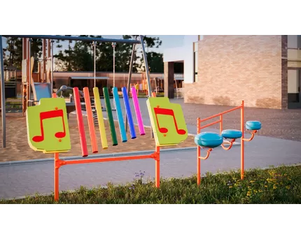 - Музыкальные панели — ксилофоны, барабаны и «поющие» трубы развивают слух и чувство ритма.