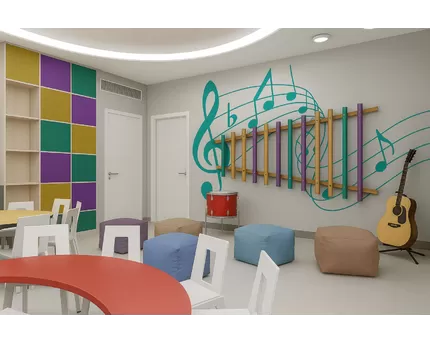 - Кабинет, оснащённый инструментами и оборудованием, даёт возможность детям не только слушать, но и принимать участие — петь, играть, импровизировать. Такие занятия способствуют развитию координации, слуха, памяти и моторики.