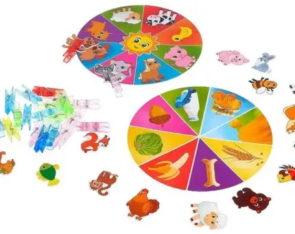 Полезной для детей будет игра в ассоциации. Положите перед ними разные изображения еды и прищепки с животными. Пусть дети вспомнят, что едят животные и закрепят прищепку в правильном месте. Так дети одновременно тренируют мелкую моторику и познание окружающего и животного мира. Также по ходу игры они учатся делить животных на травоядных и хищников, узнают их характерные черты и пр.