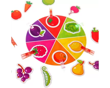 Положите перед детьми цветной трафарет и прищепки и предложите соотнести одинаковые цвета. В процессе игры спрашивайте, какого цвета прищепку держит в руке ребенок. На продвинутых занятиях можно уточнять оттенок: например, у синего цвета – это голубой, бирюзовый и морской. Также игру можно проводить в тематическом стиле: например, в качестве трафарета использовать изображения фруктов, овощей, автомобилей и прочих предметов, которые имеют один основной цвет. Так дети одновременно будут познавать окружающий мир.