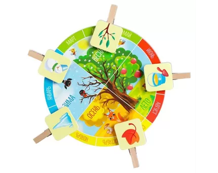 Понадобится: трафарет с сезонами, прищепки с тематическими предметами.