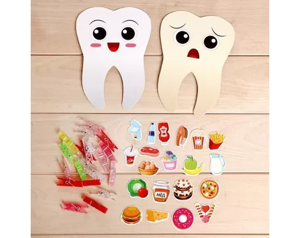 Понадобится: изображения еды, прищепки с животными.