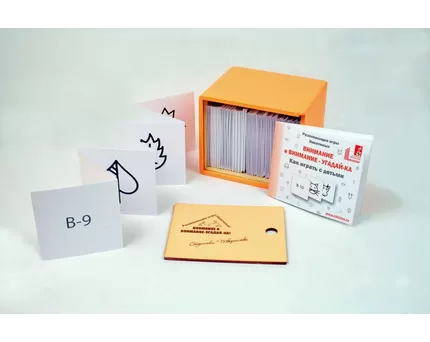 Карточки собираются гармошкой так, чтобы сразу была видна маркировка, указывающая на тип задания и сложность. Комплект «В» подойдет ребятам с 2-3 лет, а «ВУ» – с 4-5 лет.