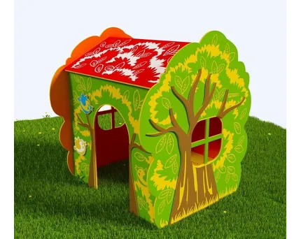 Для территории частного дома или небольшого детского сада уместно оборудование с деревянными элементами. Дерево создаёт уютную атмосферу, приятные тактильные ощущения. При регулярной обработке защитными средствами оно остаётся безопасным, долговечным, визуально гармонирует с зелёными насаждениями.