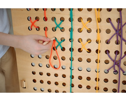 Игрушки-шнуровки представляют собой деревянные или пластиковые фигурки с отверстиями, через которые нужно пропускать шнурок.