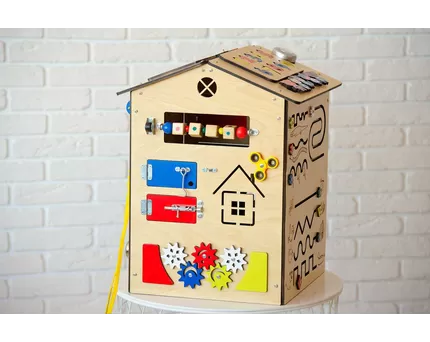 Бизидом представляет собой развивающий набор, состоящий из большого количества элементов. Все детали выполнены из качественной древесины. В качестве покрытия применяется краска без вредных компонентов. В домике есть лабиринт, шнуровка, циферблат, фигурки животных и разные элементы. Игра с таким набором способствует развитию мелкой моторики и интеллектуальных способностей.