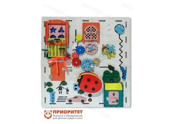 Бизиборд – простая, но очень увлекательная игрушка, которая предназначена для детей дошкольного возраста. Новая модель от компании Приоритет называется «Детский восторг». Именно такую эмоцию она вызовет у малышей, ведь на площадке 50х60 см было помещено огромное количество интересных игровых деталей.