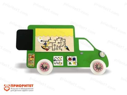 Яркий бизиборд в виде настоящего фургона понравится каждому малышу любого возраста. На бизиборде есть много лабиринтов с фигурками разной сложности, а также небольшая доска для рисования мелками. Ребята будут рады пройти все уровни лабиринта, а также проявить свои навыки в художестве и письменной речи.