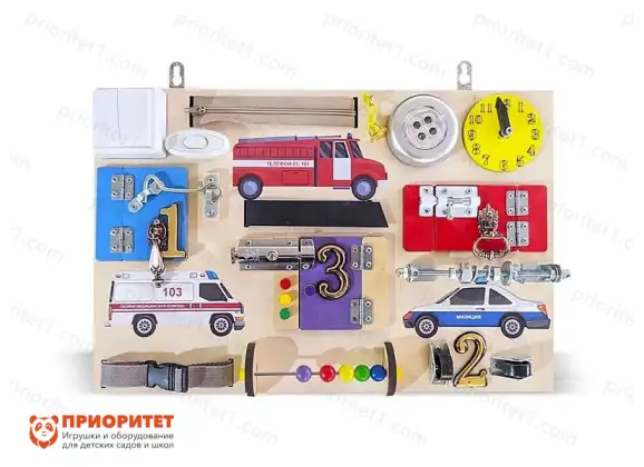 Интерактивный бизиборд «Наши спасатели» станет отличным подарком по любому поводу. Он понравится и девочкам, и мальчикам, которые активно познают окружающий мир своими ручками. Бизиборд познакомит малышей с транспортом спасательных служб, а также поможет им стать самостоятельнее – множество щеколд, переключателей и застежек позволят малышу безопасно и увлекательно научиться обслуживать себя. Основа бизиборда выполнена из натурального древесного массива, отполирована до гладкого состояния и лишена острых углов. Крепление бизиборда осуществляется с помощью двух настенных петель, что позволит органично разместить его в любом интерьере. Игрушка не содержит токсичных веществ и аллергенов.