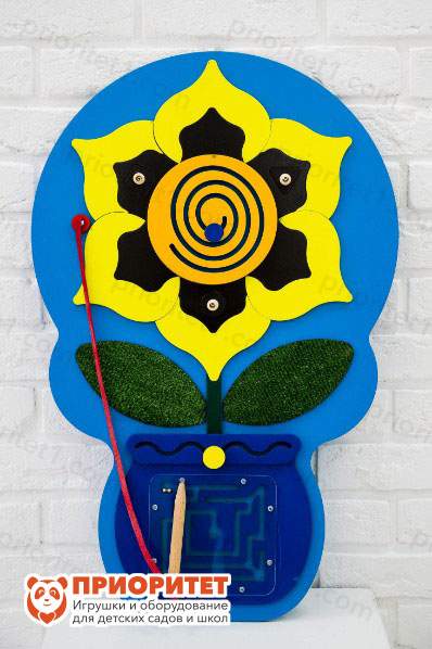 Бизиборд выполнен в виде красочного подсолнуха. Панель придает приятное летнее настроение. Дети не только физически и умственно развиваются, но и учатся самостоятельности в домашних делах. На панели расположены элементы, часто привлекающие детское внимание. Главный плюс – эффективное развитие и безопасное удовлетворение детского любопытства. Бизиборд предназначен для проведения развивающих игр в дошкольных образовательных учреждениях, коррекционных центрах и т.д.