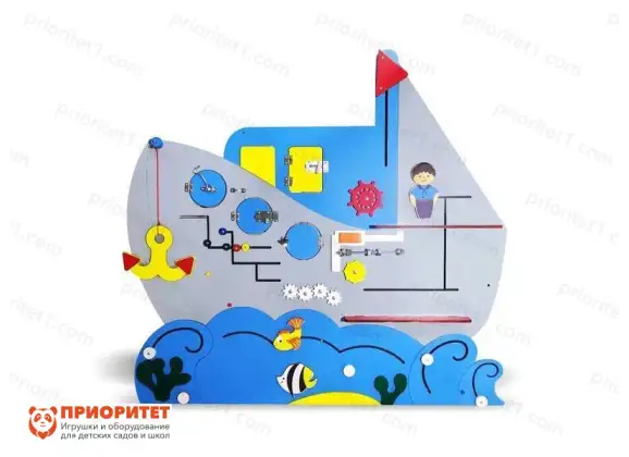 Бизиборд «Покорители морей» выполнен в виде красочного корабля. Вместе с ним дети учатся легко решать бытовые задачи, такие как защелкивать замочки, передвигать предметы из одной точки в другую, крутить шестеренки и понимать принцип их действия, открывать дверцы. В процессе игры ребенок развивается не только физически, но и умственно. Во время занятий ребенок самостоятельно решает сложные задачи, у него тренируется координация и внимательность, а также тактильное восприятие элементов.