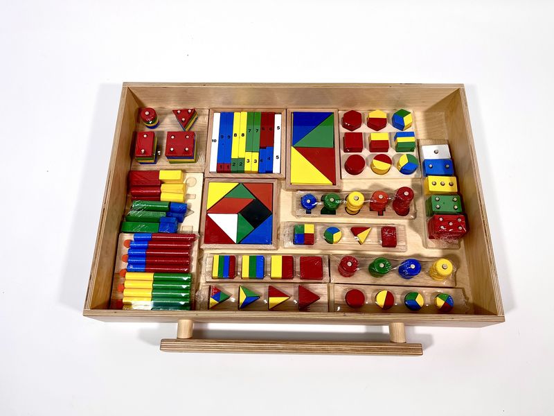 Модуль сделан по методике Фребеля. В комплект входят интересные игровые элементы, которые можно использовать для развивающих занятий. Они помогут познакомиться с геометрическими фигурами, их свойствами. Можно проводить практические опыты, тренировать мелкую моторику, обогащать тактильные ощущения.