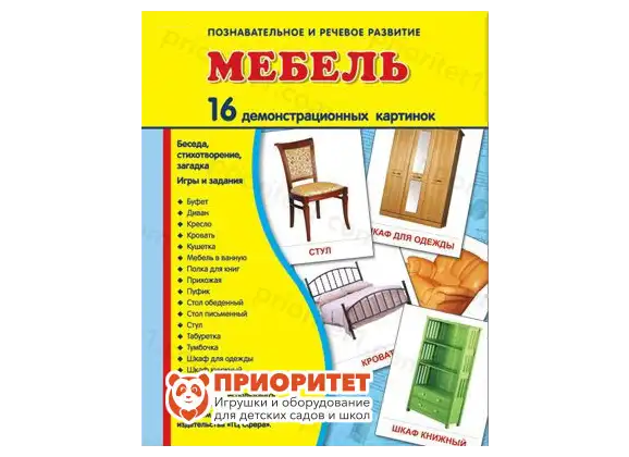 - Каждая карточка содержит изображение одного предмета мебели – шкаф, тумбочка, стул, полка и т.д.