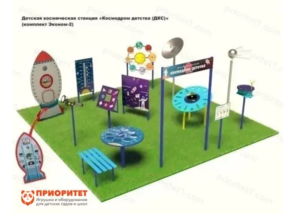 «Космодром детства» — это не просто игровая площадка, а настоящий центр детского воображения, исследований и первых открытий во Вселенной. Комплект «Эконом-2» представляет собой готовое решение для создания космического пространства на территории детского сада, школы или другого образовательного учреждения. Уникальная космическая станция помогает детям в увлекательной форме изучать азы астрономии и знакомиться с основами космонавтики.