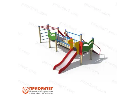 Игровой комплекс выполнен в тематике счастливого детства. Такая игровая зона быстро станет любимым местом среди детворы. Здесь дети смогут свободно бегать, играть, кататься, общаться и веселиться. Комплекс можно назначить местом встреч для друзей. Конструкция оснащена горкой с бортиками и турниками. Дополнительно имеется пространство для передвижения. Комплекс можно установить на придворных детских площадках, игровых зонах учебных заведений либо в частном секторе.