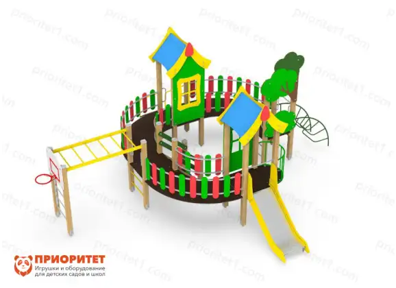 Игровой комплекс со множеством снарядов станет отличным украшением домашнего или дачного участка, спортивной площадки, игрового центра или детского сада, и многих других мест. Он позволяет детям провести время с интересом и пользой для физического развития. Тренируйте с ребенком его физические навыки в простой игровой манере. Комплекс собран из полностью безопасных деталей, которые подходят под все современные стандарты. Использование токсичных или опасных материалов исключено.
