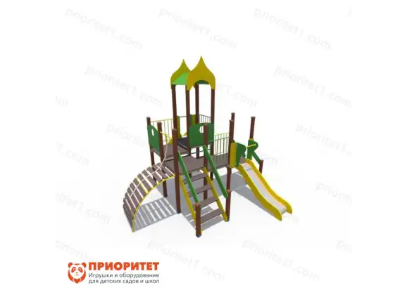- Включает множество игровых элементов: горки, лазалки и платформы, которые стимулируют физическую активность и воображение.