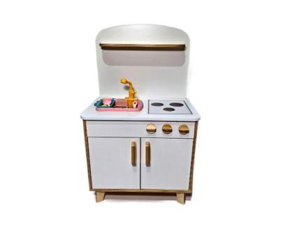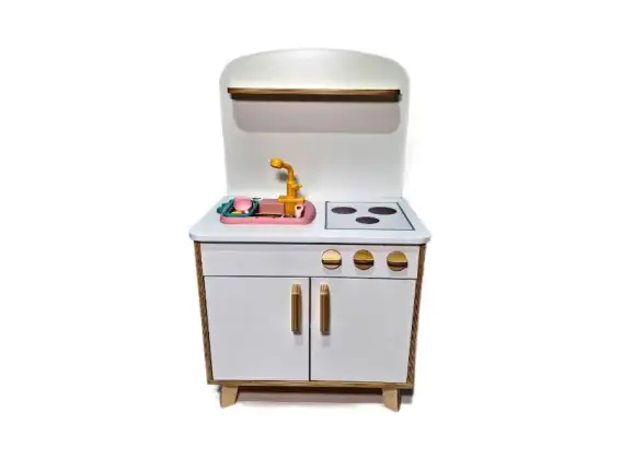 - Универсальность: имитация настоящей кухни с мойкой, плитой и полкой;