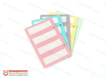 - На странице 4 полосы ленты-липучки, вмещается до 12 карточек