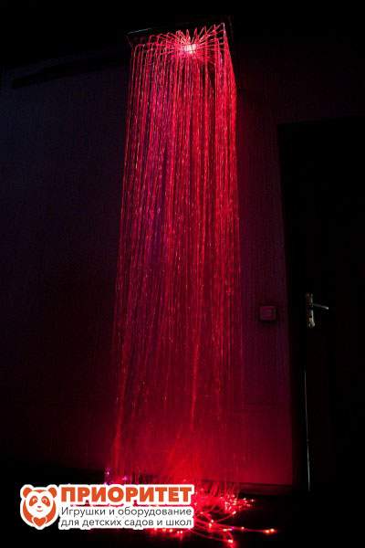 Фиброоптический душ рекомендован для оформления комнаты релаксации и сенсорной комнаты. Фибродуш – это действующий способ снятия стресса и расслабления. Фиброволокна равномерно расположены по всей поверхности металлической решетки-основания. Волокна, ниспадающие всей длиной до пола, образуют своеобразный световой водопад. Светотерапия станет дополнением к музыкальным занятиям и урокам чтения. Фиброоптический душ предназначен для групп детского сада, развлекательных и коррекционных центров и т.д.