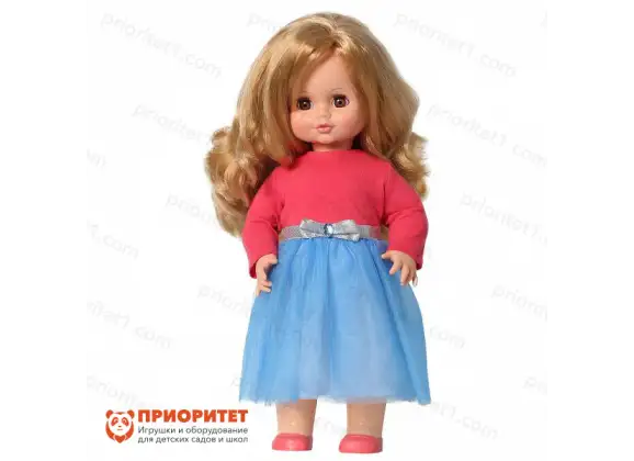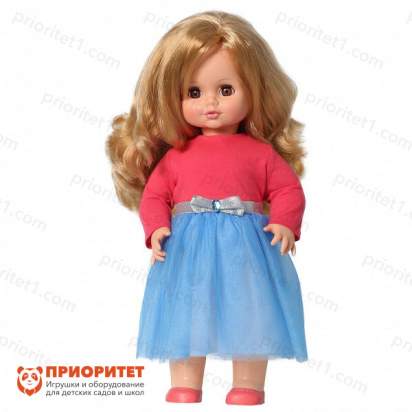 Говорящая кукла «Инна» – современная игрушка с длинными волосами в стильной одежде. Она сможет стать настоящей любимицей для ребенка. Кукла одета в яркое платье – верх выполнен из трикотажной ткани, низ – из органзы. Талия отделана поясом-лентой с бантиком. На ногах удобные туфли в виде балеток. Куклу очень легко раздеть и надеть на нее новый наряд из дополнительно приобретенного или пошитого набора. Игра с переодеванием хорошо развивает мелкую моторику и формирует чувство стиля.